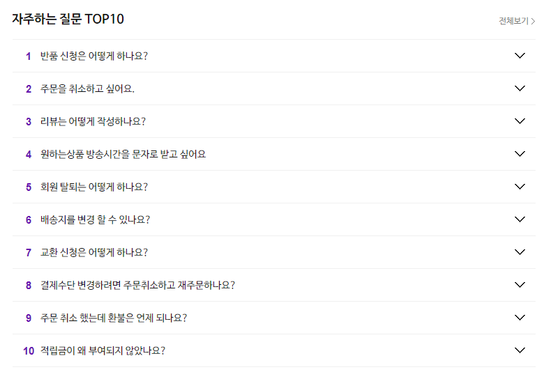 CJ온스타일 고객센터 자주하는질문