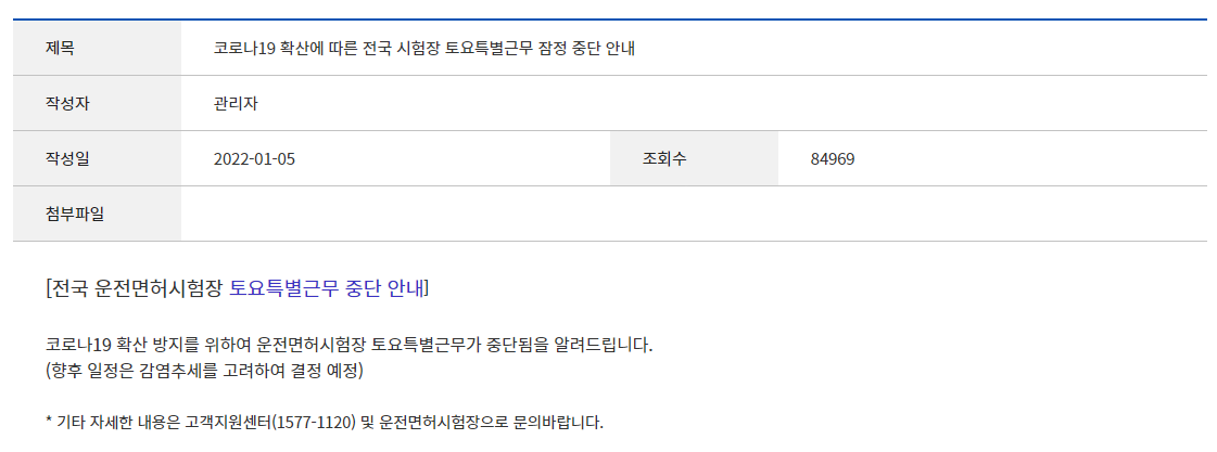 전국에는 운전면허 시험장이 있습니다. 운전면허시험장은 운영시간은 보통 평일 기준 09:00부터 18:00입니다. 해당 시간에 방문하기 어려운 분들을 위해 19개의 운전면허 시험장에서 월 1회 토요일 근무를 진행하고 있습니다. 하지만 코로나로 인해 현재 토요특별근무가 잠정 중단된 상태입니다.