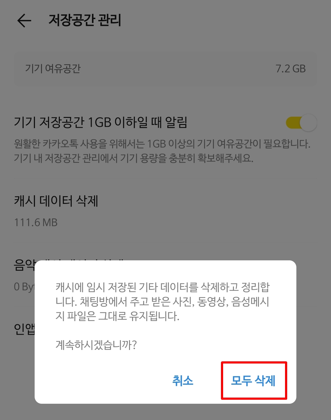 카카오톡 용량 정리 방법 2