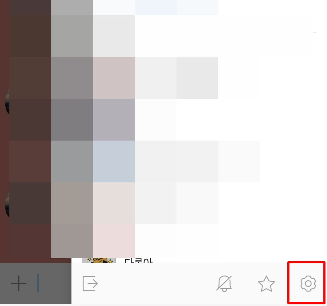 1. 카카오톡 대화창에 접속합니다. 우측 상단에 있는 세 줄을 눌러줍니다. 카톡 대화방에 있는 사람들 목록이 보이며 맨 아래에 톱니바퀴 모양이 있습니다. 톱니바퀴 모양을 클릭합니다.